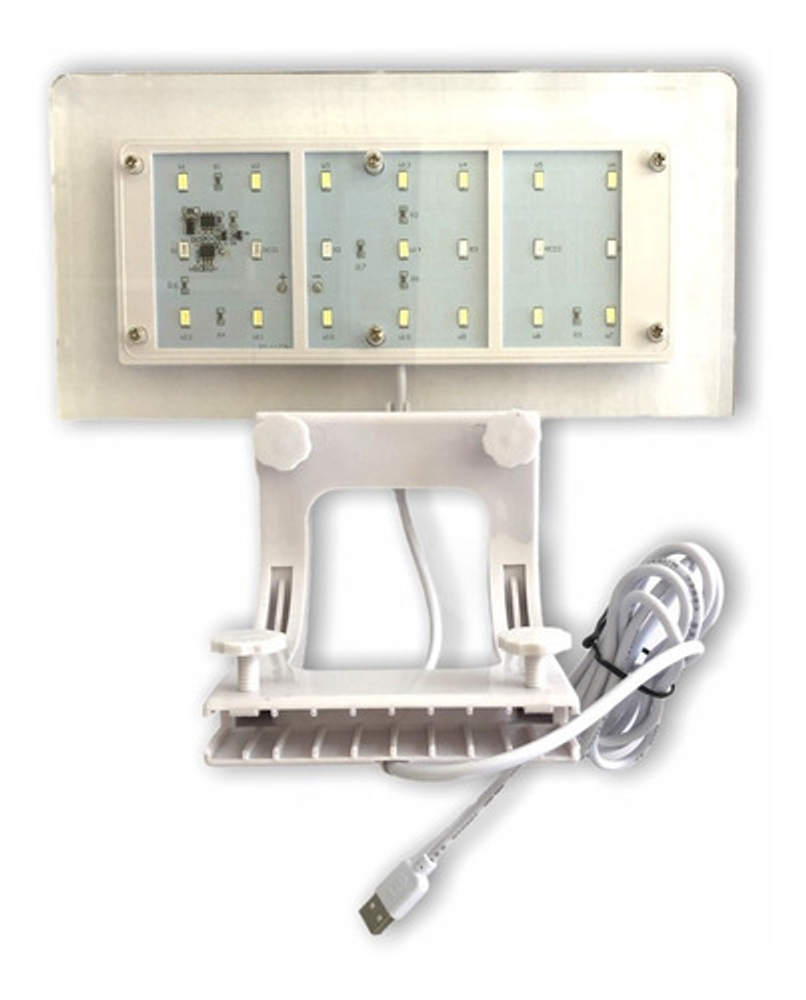 Iluminador Led de alta luminosidad TACTIL 3 MODOS DE LUZ, ROJO AZUL, BLANCO O TODOS JUNTOS Modelo : AQ-300 Consumo:12w Medidas: 25cm x 22cm LISTA PARA USAR, INCLUYE FUENTE DE 12V Y SOPORTE Resalta el color de los peces y fomenta el crecimiento de las plantas de bajo requerimiento.