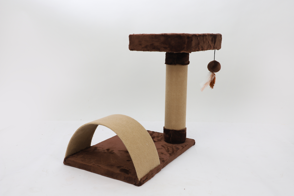 Forrado en tela mini ultra, con alfombra, puente, un descanso superior y juguete colgantes. 50 cm. Incluye imagen en la caja, manual de armado y código QR con video instructivo.