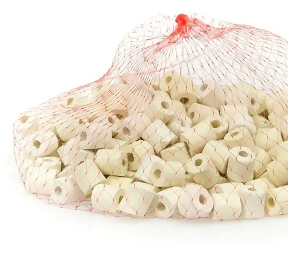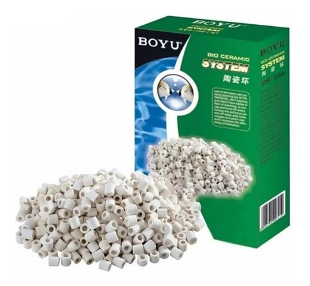 La estructura de poros abiertos permite la formación de películas biológicas de alto rendimiento que crecen en los poros y recubren sus paredes. Los poros tienen el tamaño ideal para garantizar a largo plazo la circulación de agua y el abastecimiento de las bacterias con todo lo que necesitan. En las profundidades de la estructura de poros, donde disminuye el contenido de oxígeno, la película biológica también descompone nitrato (desnitrificación). Sirven para agua dulce y agua salada ALTAMENTE ACTIVO Y COLONIZADOR DE BACTERIAS Aumenta la eficacia de la filtración biológica Alto nivel de porosidad y filtrado Para usarse en agua dulce o salada Ideal para filtros Botellones Externos y caseros Presentación: 500g Con bolsa portante. Después de seis meses de uso, cambia la mitad de ellos y usa anillos nuevos con los anillos viejos restantes Atención: Después del transporte, los bioanillos pueden tener polvo de cerámica en la superficie es normal los nuevos bioanillos deben lavarse con agua fresca antes del uso y será mejor que los pongas en agua hirviendo durante 20 minutos. En cada mantenimiento si se requiere enjuagar los mismos con el agua de la pecera