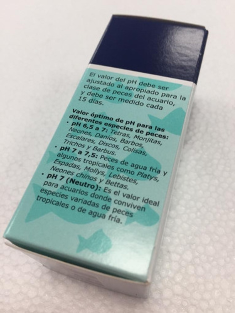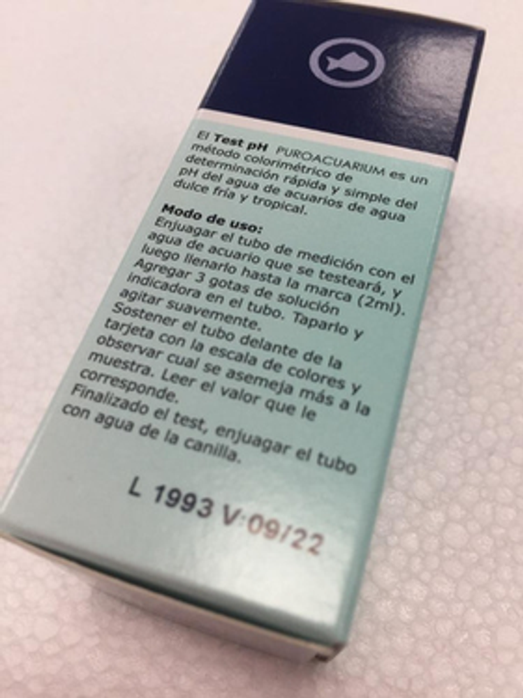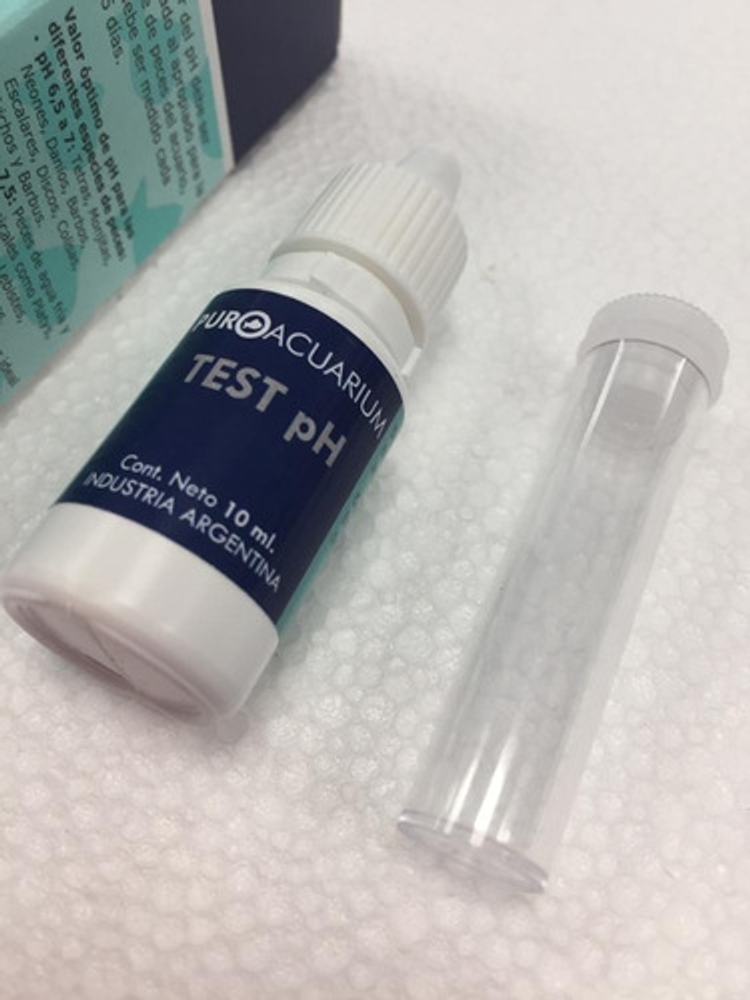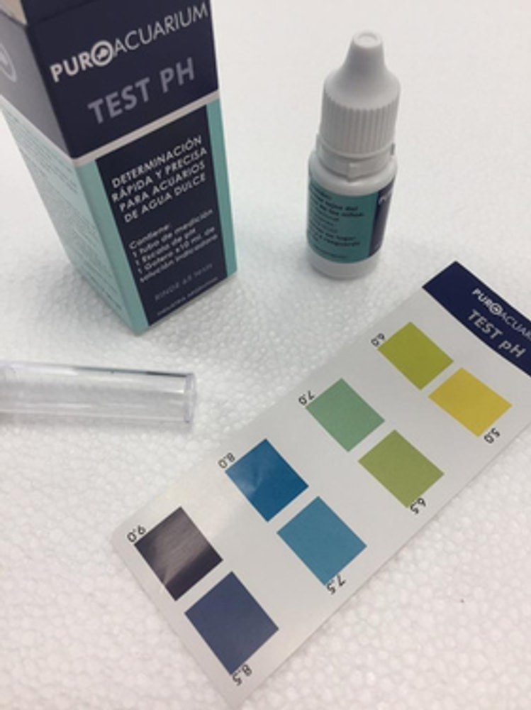 Modo de uso: Enjuagar el tubo de medición con el agua del acuario que se testeará, y luego llenarlo hasta la marca (2ml). Agregar 3 gotas de solución indicadora en el tubo. Taparlo y agitar suavemente. Sostener el tubo delante de la tarjeta con la escala de colores y observar cual se asemeja mas a la muestra. Finalizado el test, enjuagar el tubo con agua de la canilla.