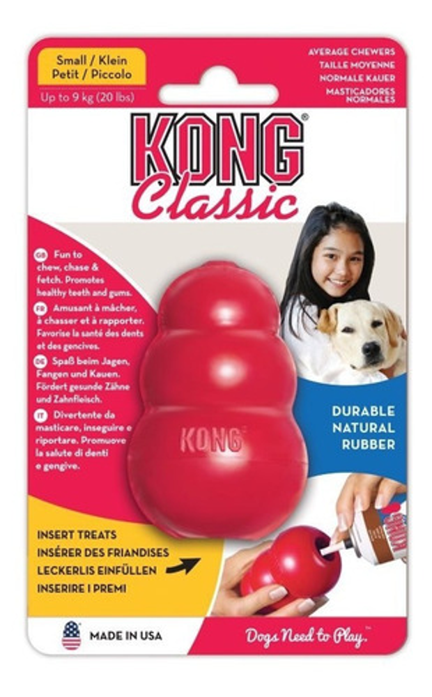 El KONG Classic es el modelo de referencia de los juguetes para perros y ha sido el artículo esencial de los perros de todo el mundo desde hace más de cuarenta años. Los beneficios del KONG Classic ayudan a satisfacer las necesidades instintivas de los perros, y su exclusiva fórmula de caucho rojo completamente natural es ultraduradera y produce un rebote errático ideal para perros a los que les gusta masticar mientras satisfacen su necesidad de jugar. ¿Quiere prolongar el tiempo de juego? Rellénelo con tentadores trozos de alimento balanceado y colóquele un toque de mantequilla de maní para que sea aún más atractivo. Para sumar más diversión, agregue KONG Snacks y cubra con KONG Easy Treat.